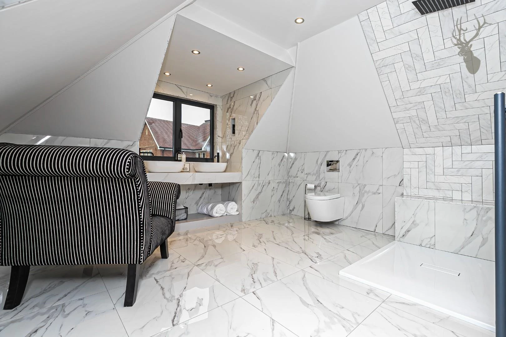 The first floor is equally as impressive offering a master bedroom with stunning views over the north east facing rear garden which benefits from an en-suite shower room and a walk in wardrobe. the second bedroom also has an en-suite. There are two further double bedrooms which are serviced by the modern family bathroom.