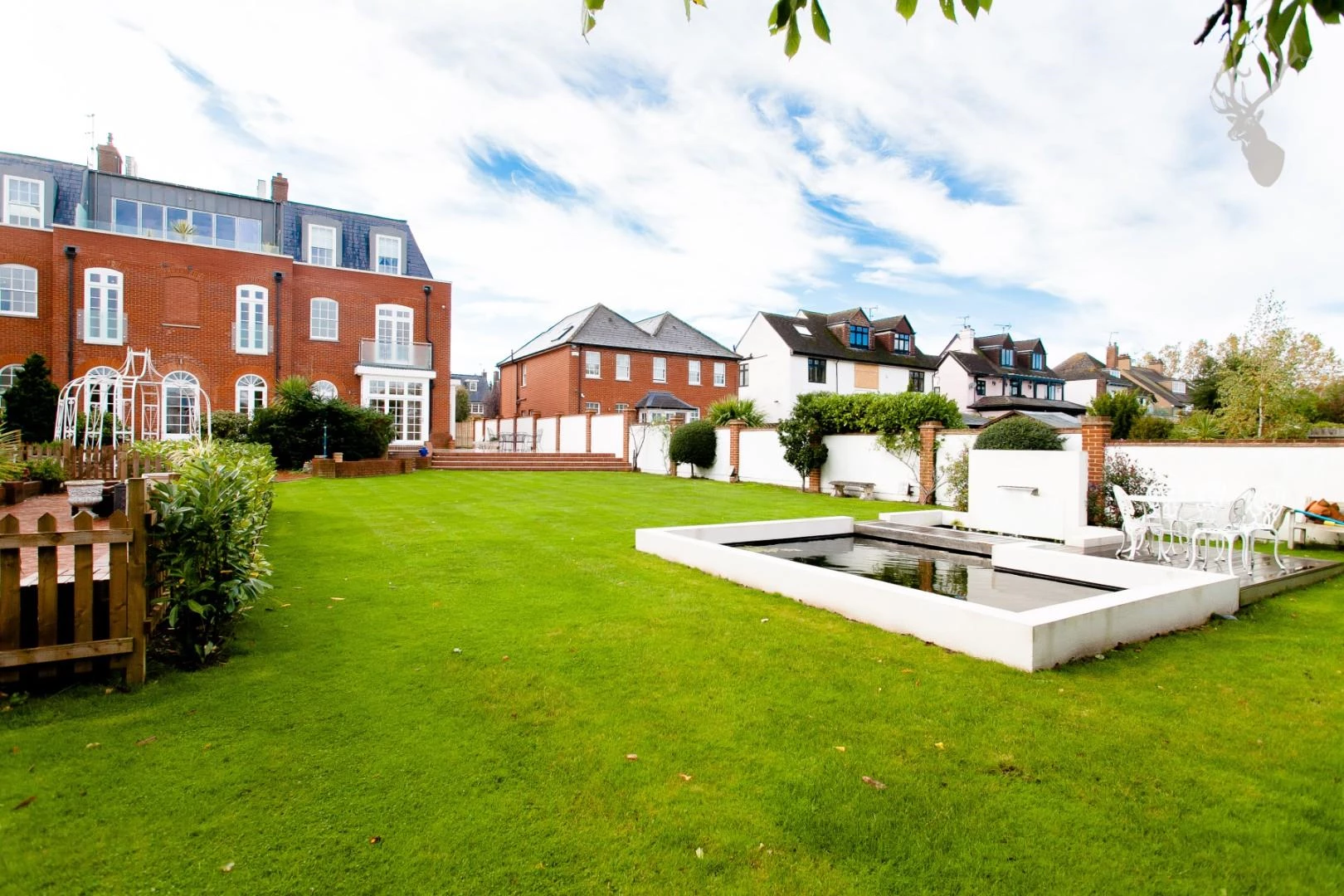 At the rear, in addition to the private terrace areas, there are landscaped communal grounds with manicured lawns, water feature and views into West Essex Golf Club,.