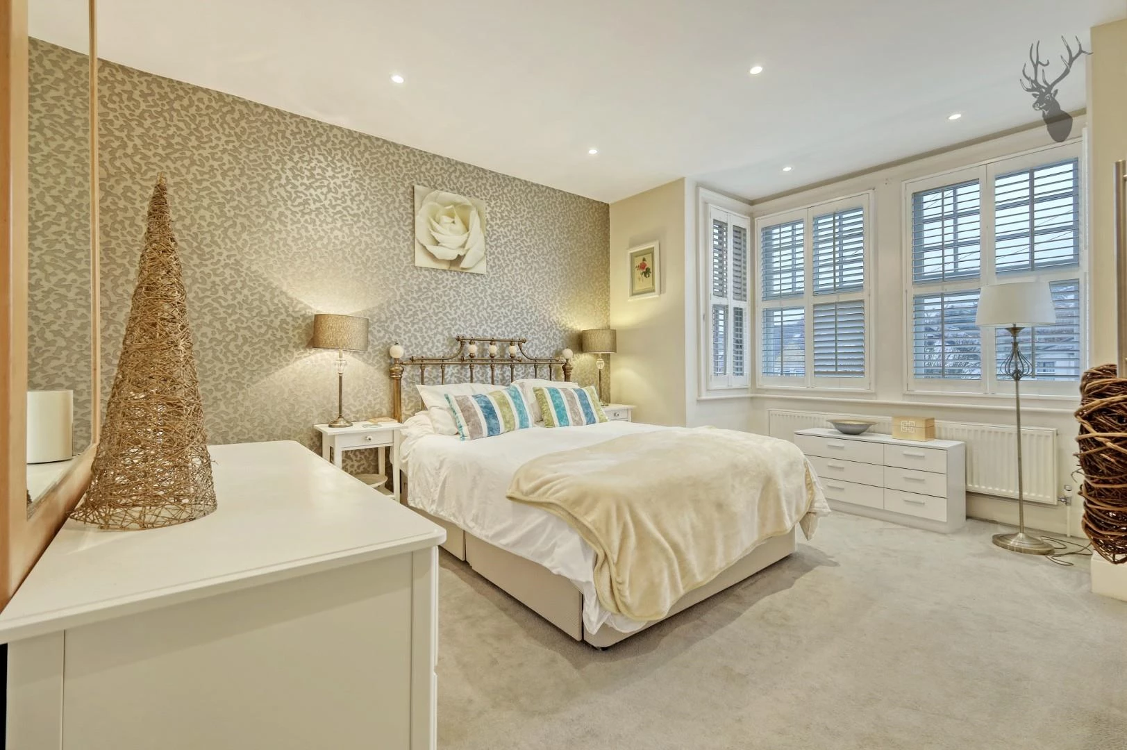 The first floor comprises three generously sized bedrooms, two of which include fitted wardrobes, complemented by a modern family bathroom. The master bedroom occupies the entire second floor and benefits from an en-suite bathroom and a private dressing room. On the ground floor, there is an additional family bathroom and a separate WC for added convenience.