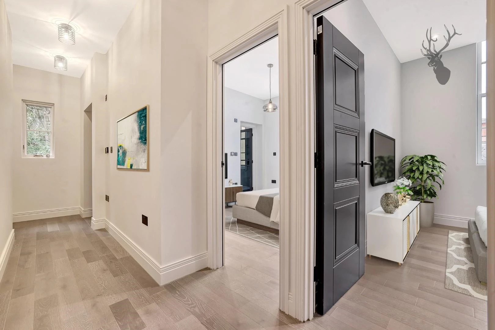 Masterfully reimagined, the building s past is celebrated by a marriage of exquisite period detailing and considered contemporary design characteristics, which include Lombardia arch stained-glass windows, original exposed buttresses and voluminous ceiling heights. The interior spaces are defined by a rich ash oak flooring with underfloor heating, black-panelled doors and jet black quartz work surfaces.