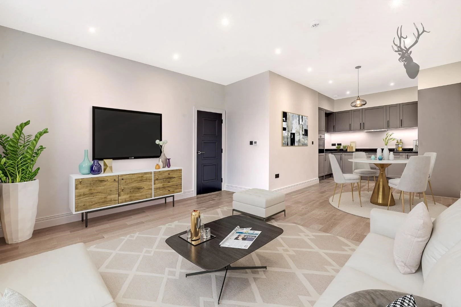 Featuring a shaker design kitchen which is open-plan to a spacious reception and is perfect for both relaxing and entertaining, as well as offering ample work-from-home space. Both bedrooms are true doubles, the master including an en-suite shower room. This exciting apartment is completed by a sophisticated and aesthetically pleasing main bathroom.