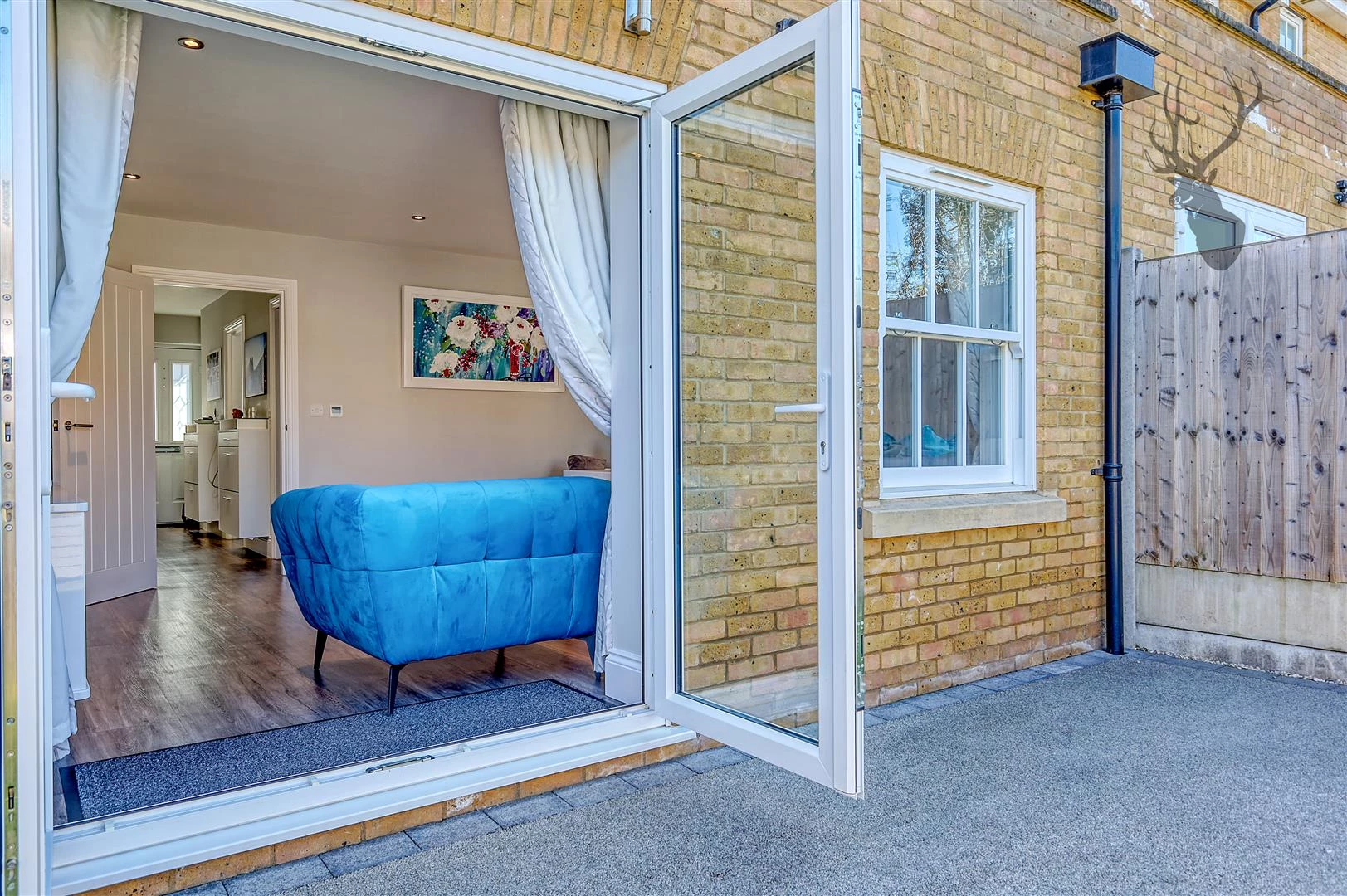 As you step inside, you ll find a bright hallway that leads into a fully integrated kitchen, complete with sleek quartz worktops and bespoke cabinetry throughout perfect for anyone who loves to cook or entertain. Towards the back, there's a spacious lounge/diner that opens straight out to the garden, making it a great spot for relaxing or hosting friends. You've also got a handy WC and a great understairs storage option on the ground floor.